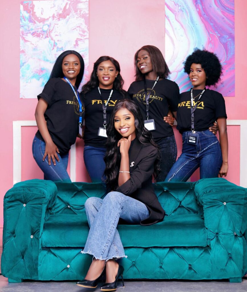 Freya: I chose the name Freya Beauty simply because Freya is my name—my mom gave it to me, and I’ve always liked it. It’s also the name most people associate me with, especially because of my background in modeling. I was a Miss World Kenya finalist representing Uasin Gishu County from 2019 to 2021, and I’ve also held the title of Miss Noble, among other pageants. Since the name was already well-known in my journey, it felt natural to carry it into my brand.