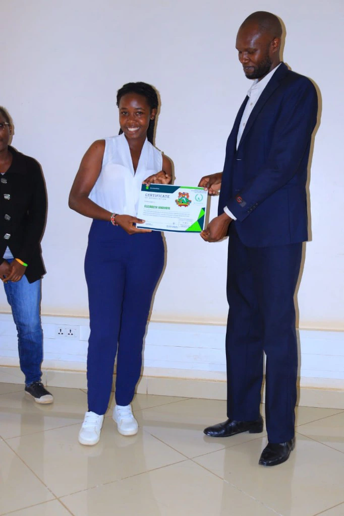 Elizabeth Khavai receives a certificate of recognition from the Kenyatta University Students of Public Policy and Administration Club.