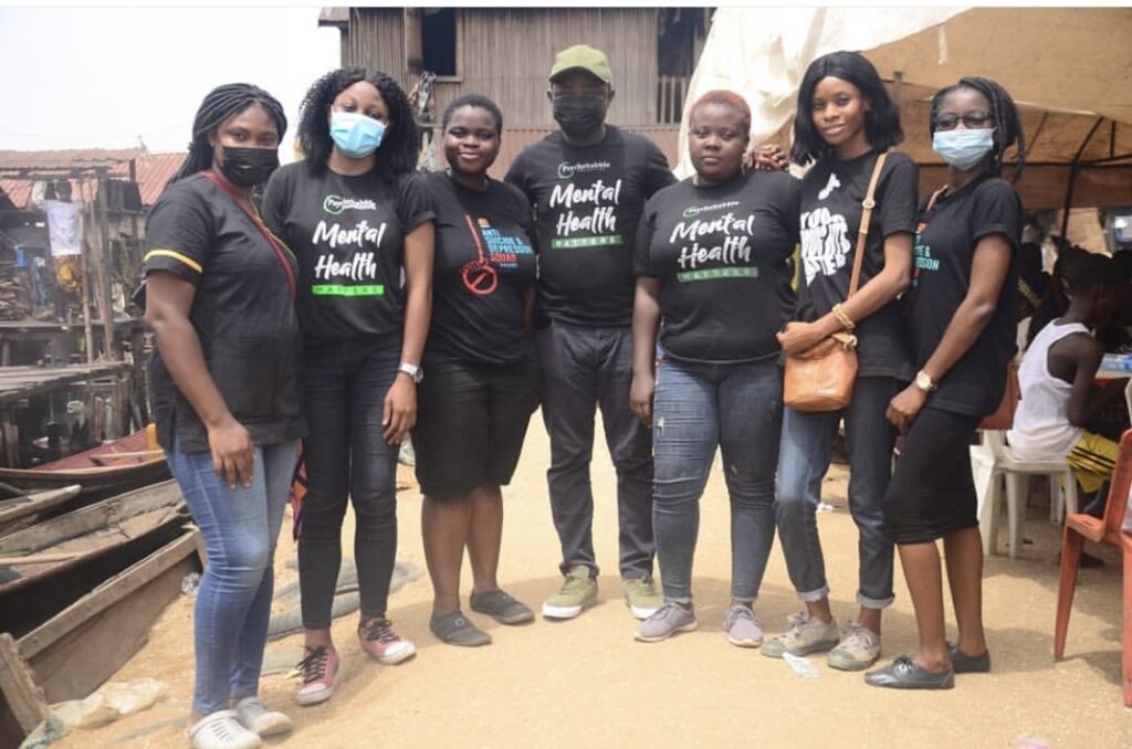 Fiyinfoluwa Onajoko with partners from Executives Helping Initiative, Anti-suicide and Depression Squad, and Psychebabble Foundation during a community outreach in Makoko, Lagos, bringing medical care, mental health support, and essential supplies to those in need.