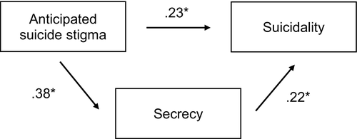 A 2020 study “Anticipated Suicide Stigma, Secrecy, and Suicidality Among Suicide Attempt Survivors” by Mayer and colleagues sheds light on how this silence and stigma deepen the wound for suicide attempt survivors. Their model showed that anticipated stigma was directly linked to higher suicidality (.23*), but it also worked indirectly by fueling secrecy (.38*), which in turn increased suicidality (.22*).