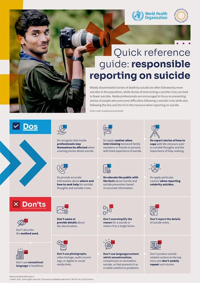 Guiding how the stories of suicide are shared. How the story is shared matters just as much, avoiding graphic details and sensationalism while highlighting hope, healing, and available resources can make a real difference. When implemented promptly, these strategies not only reduce contagion risk but also create a space where people feel seen, supported, and able to start recovering.