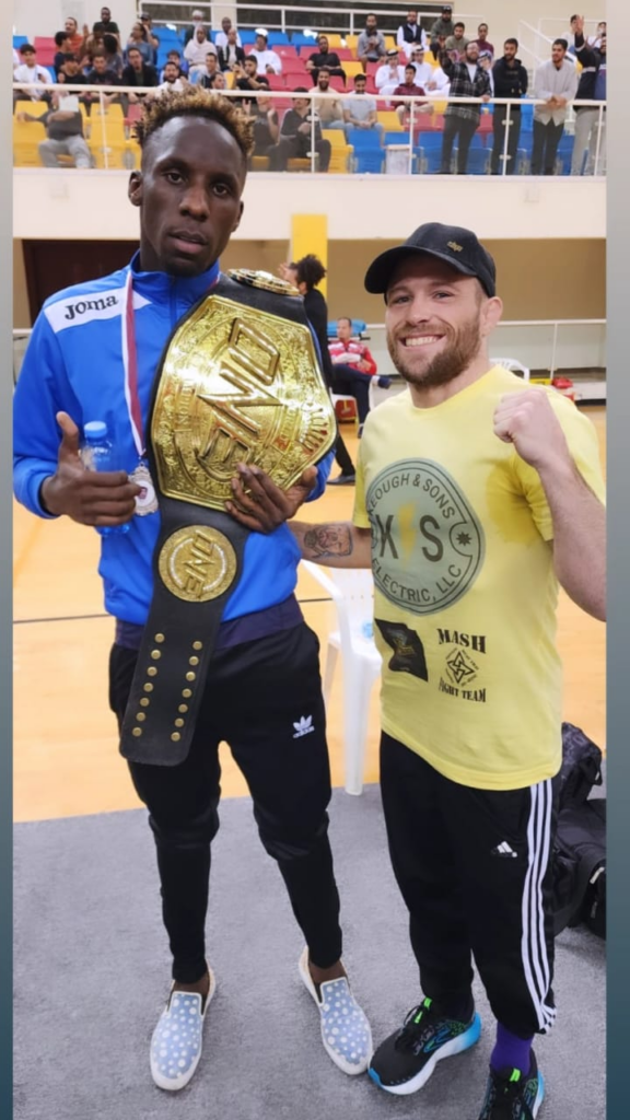 When asked what inspired him to expand into Muay Thai and MMA, he said, “In 2021, I moved to Qatar to work as a cleaner. I was immediately impressed by how much the Middle East prioritizes sports, especially combat disciplines. While searching for a boxing gym, I met a coach who taught Muay Thai. He saw potential in my movement and strength and encouraged me to try it. That opened the door for me to grow into Muay Thai and MMA, combining styles to become a more complete fighter.”