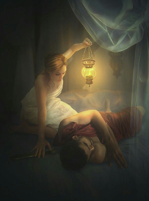 Their poisonous words found fertile ground in Psyche’s own doubts. Despite the love she felt in her husband’s embrace, despite his gentle words and passionate devotion, she began to wonder about his true nature. Her sisters provided her with a lamp and a sharp knife, urging her to look upon him while he slept and, if he proved to be a monster, to strike him down.