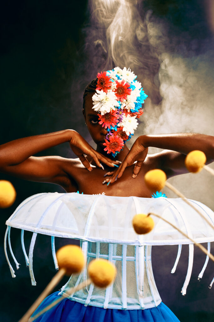The creative process, she shares, always starts with the narrative. From there, it’s a matter of choosing what leads—whether it’s silhouette, color, texture, or composition. Every step, from crafting to the final shoot, is a collaborative effort. For Sophie, community is part of the art.